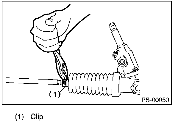 4) Remove the small clip from the boot using pliers, and then move the boot to tie-rod end side.