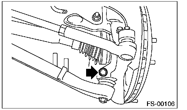 5) Remove the nut securing the front arm to crossmember. (Do not remove the bolt.)