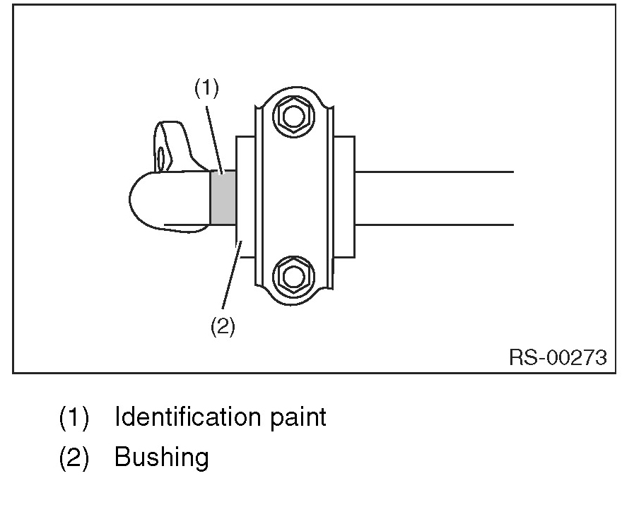 ^ When installing, align the edge of identification paint on the stabilizer to the end face of the bushing.