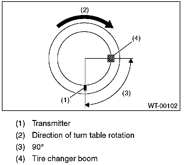 ^ To prevent damaging the transmitter, set the tire changer boom in the position as shown in the figure.