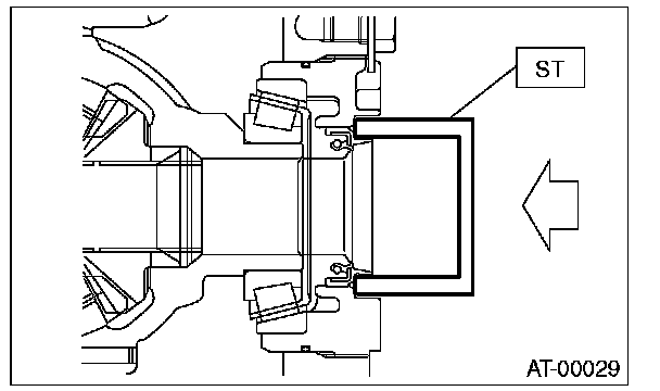 7) Using the ST, install the differential side retainer oil seal by lightly tapping with a hammer.