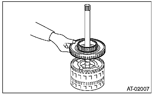 (2) Install the oil pump cover to AT main case while supporting the input clutch shaft and oil pump housing with your hand.