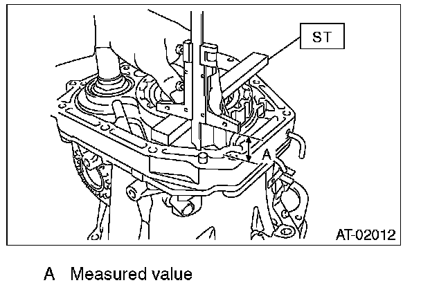 1) Using the ST, measure the height "A" from the AT main case mating surface to convex surface of oil pump cover.