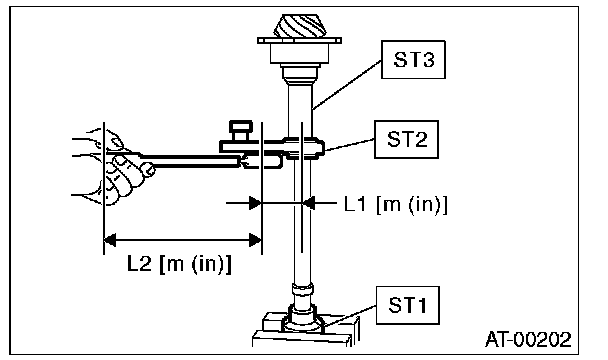 3) Rotate the drive pinion a few times using ST1 and ST2.
