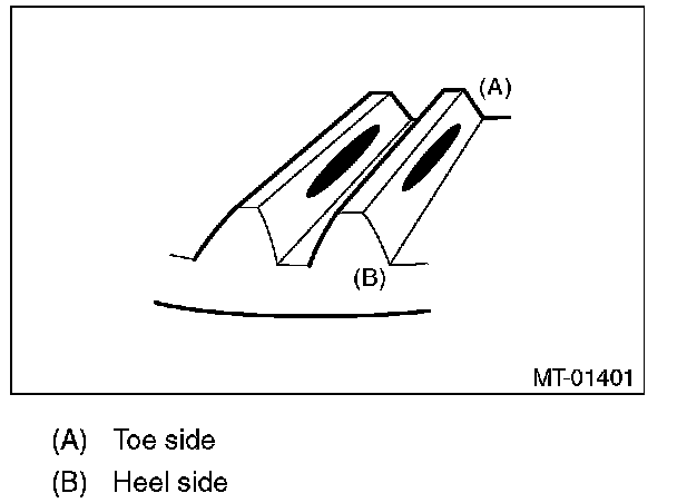 Check item: Tooth contact surface is slightly shifted toward the toe side under a no-load condition. (When driving, it moves towards the heel side.)