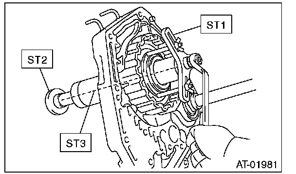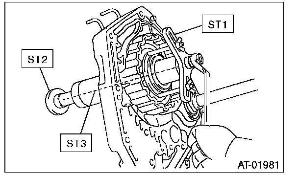 3) Using the ST1, ST2 and ST3, remove the snap ring.