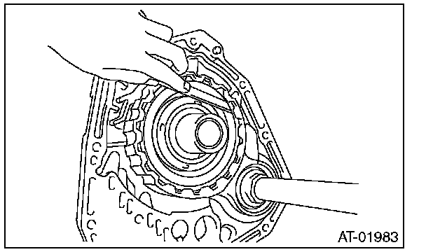 8) Remove the snap ring, replace the driven plate used in measurement of clearance with the selected retaining plate, and then reassemble.
