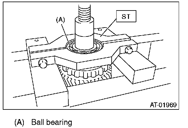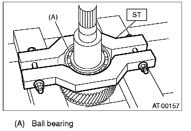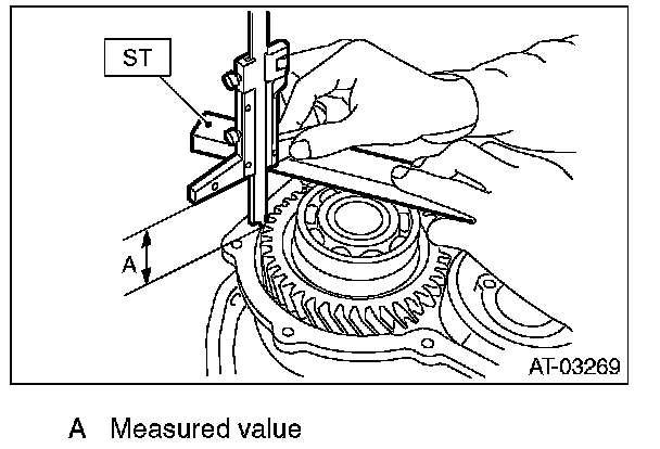 1) Using the ST, measure the height "A" from the AT main case mating surface to ball bearing outer ring contact surface.