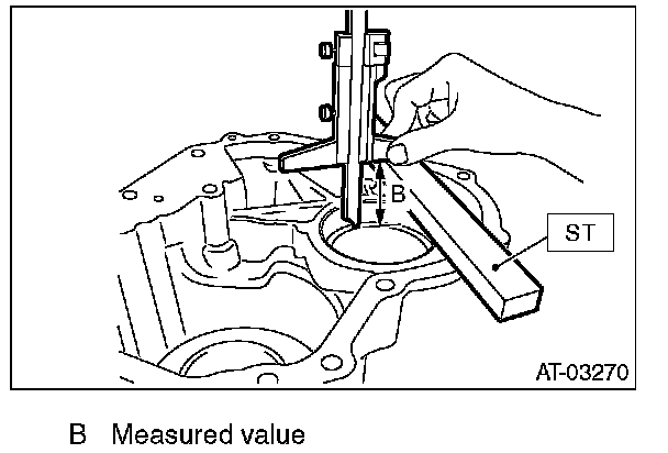 2) Using the ST, measure the depth "B", which is from mating surface of extension case to ball bearing outer ring contact surface.