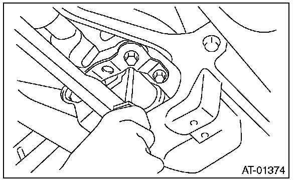 3) Tap the transmission hanger in the rear side of transmission with a rubber hammer to bend it until it is in close contact with the transmission case.