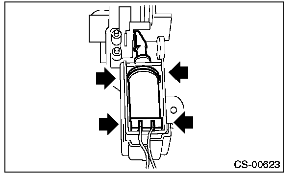 17) Remove the shift lock solenoid from the lock lever bracket.