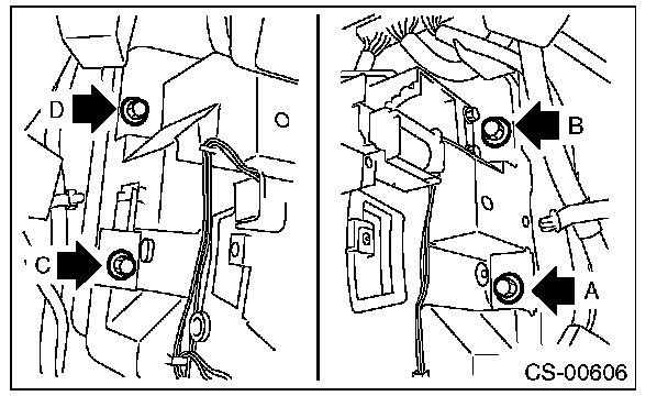 2) Tighten the four bolts to install the select lever to vehicle body, and then connect the connector.