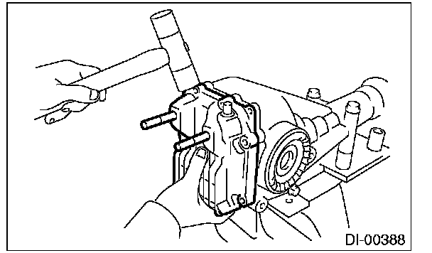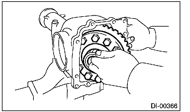 Be careful not to hit the teeth of hypoid driven gear against the differential carrier.