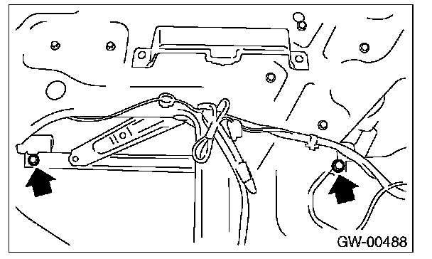 5. Operate the power window switch to move the glass to the position shown in the figure, and then remove the two bolts through service holes.