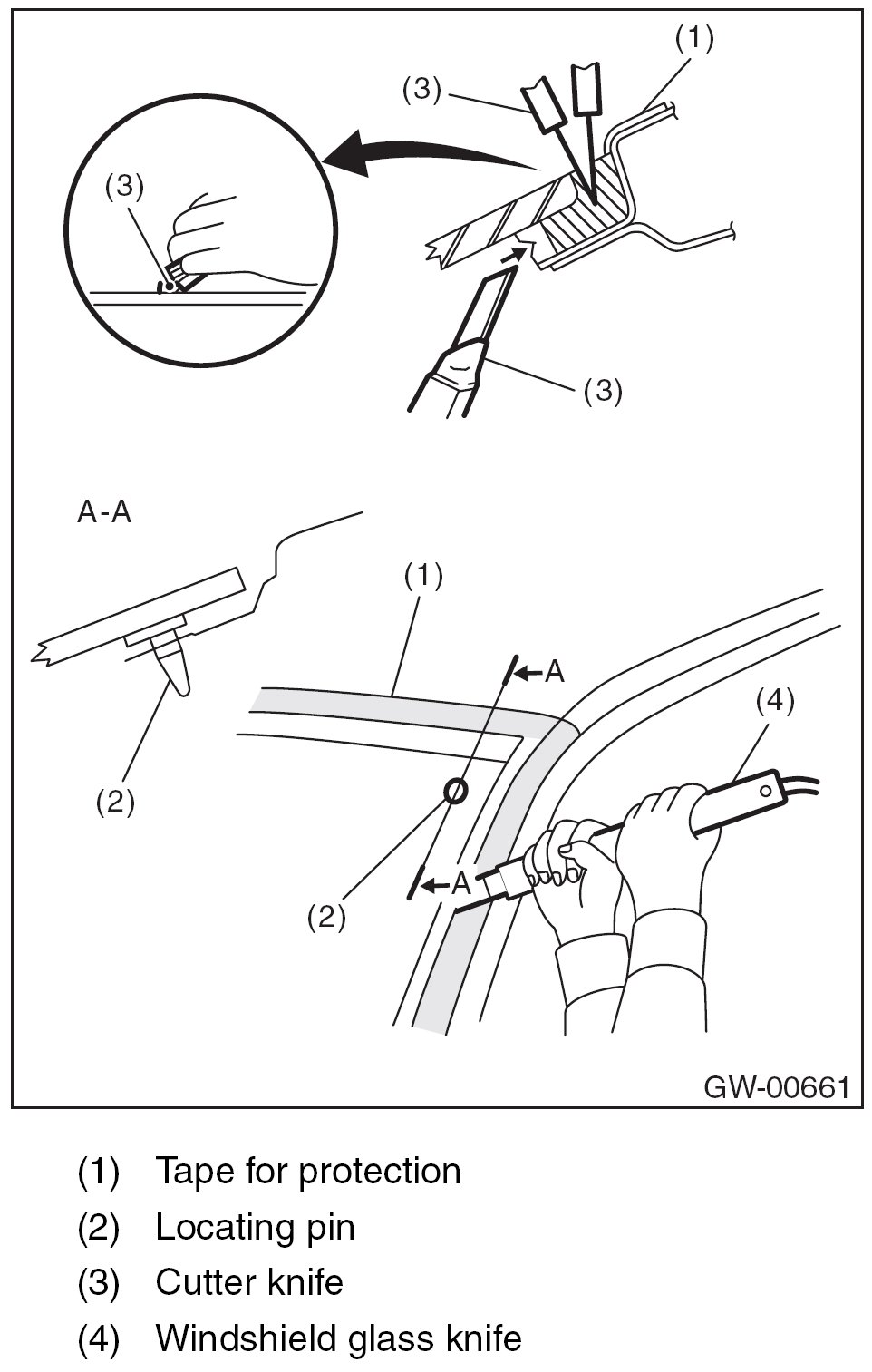 - Cutting of adhesive part shall be started with wider gap between windshield glass and body.