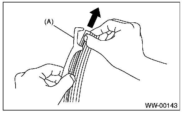 Pull the wiper rubber top slightly from stopper (A) and pull out completely.