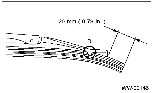 2. Insert the wiper rubber until its top end protrudes approx. 20 mm (0.79 in) from stopper D.