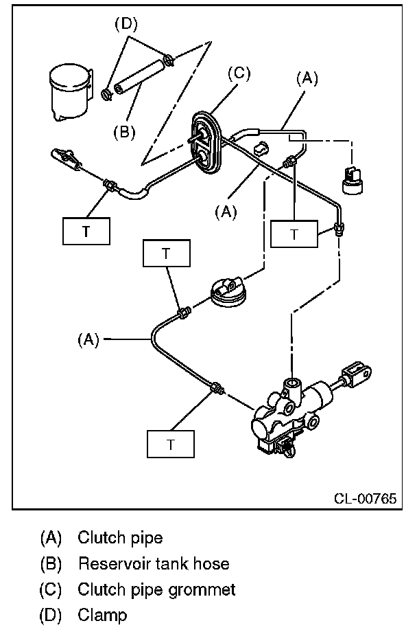 10) Remove the clutch pipe from the reservoir tank hose, mass damper, clutch damper, master cylinder and clutch pipe grommet.
