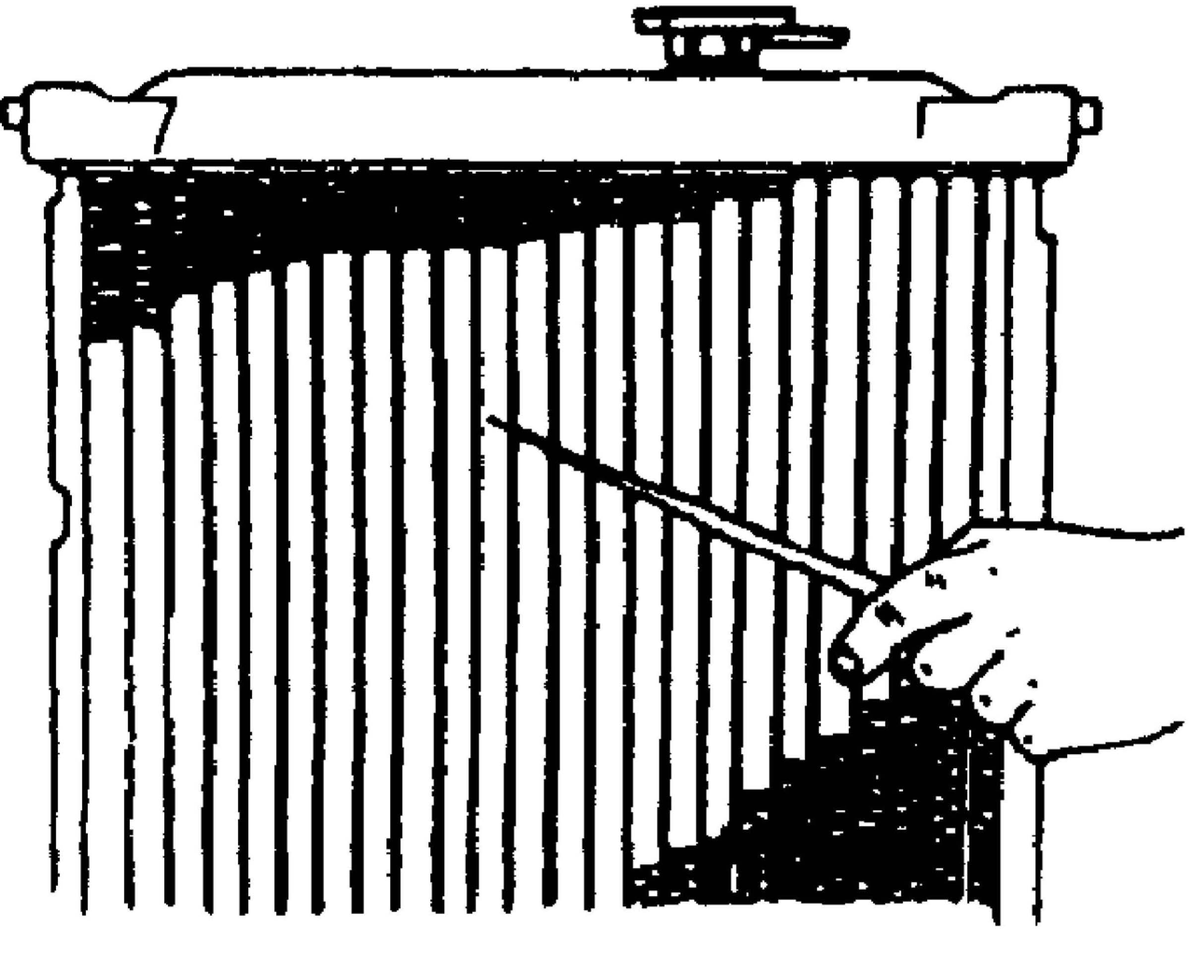 Check radiator for leakage or damage. Straighten bent fins, if any.