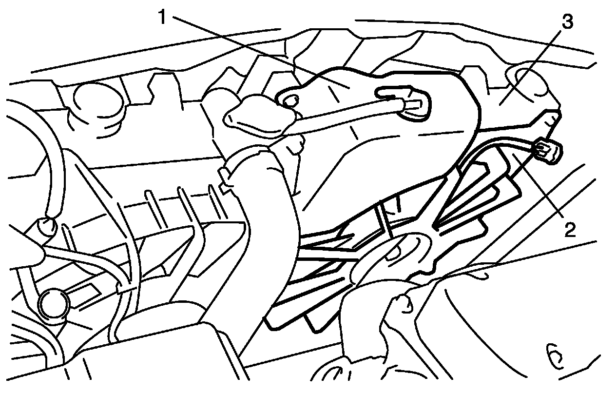 3. Remove reservoir (1) from radiator.