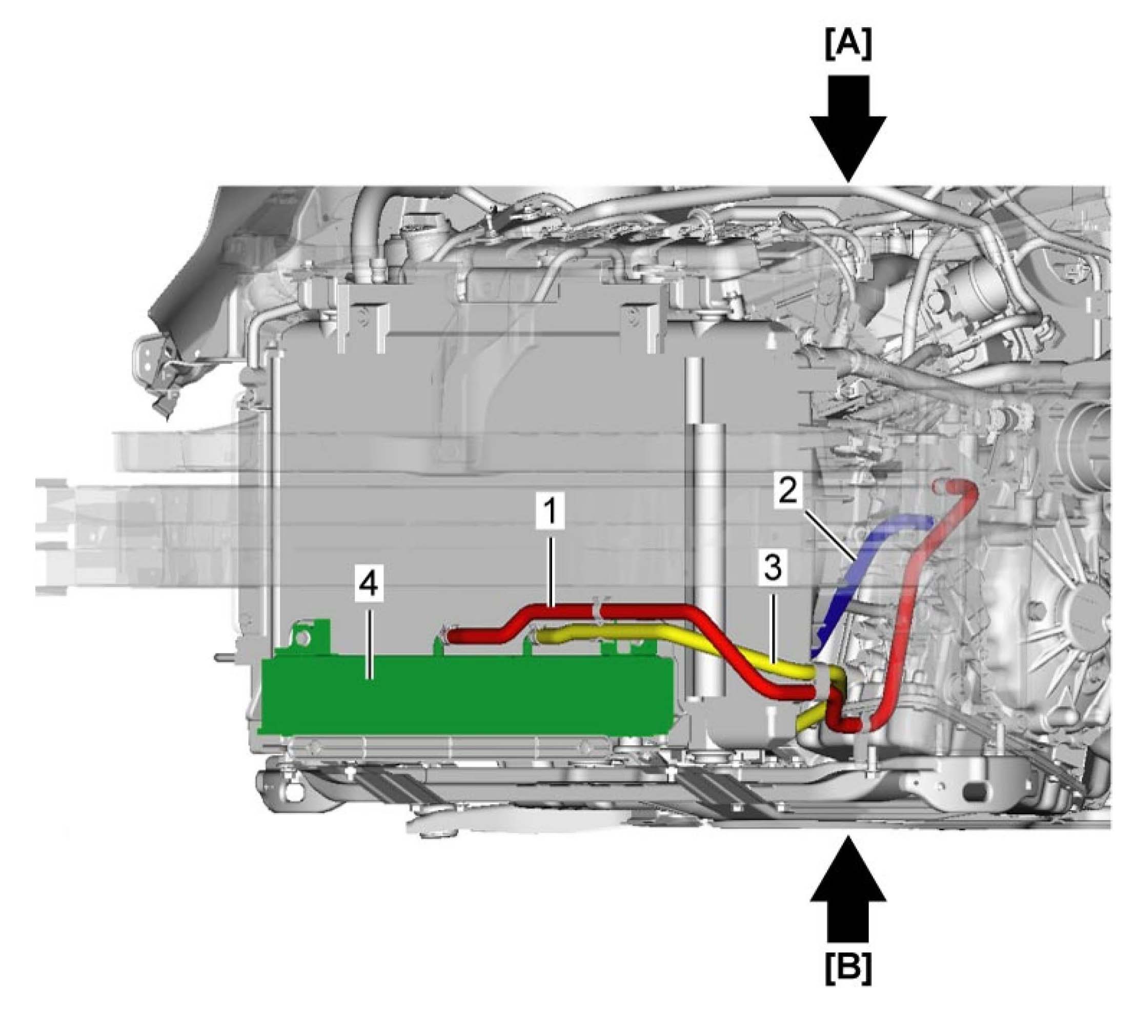 CVT Fluid Cooler Hoses ReplacementRubber hoses for CVT fluid cooler should be checked at specified interval. If replacing them, be sure to note the following.