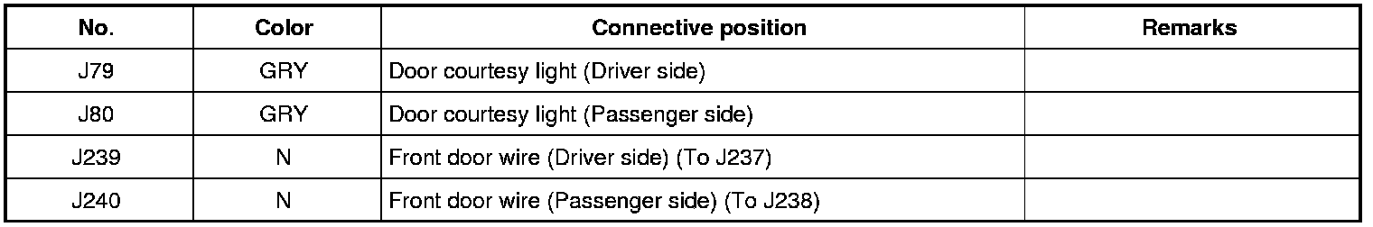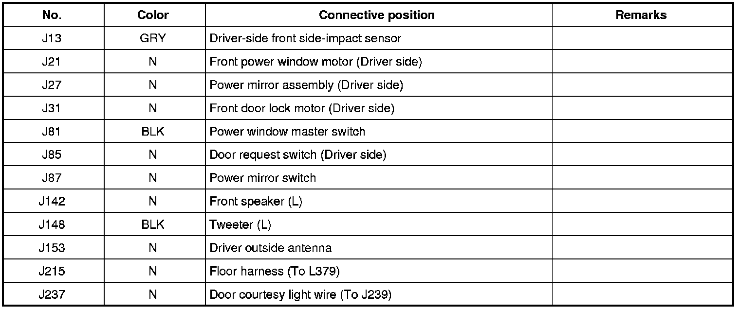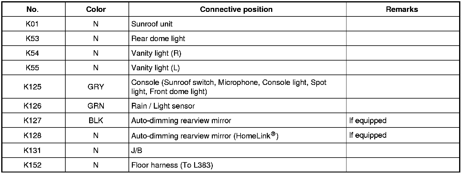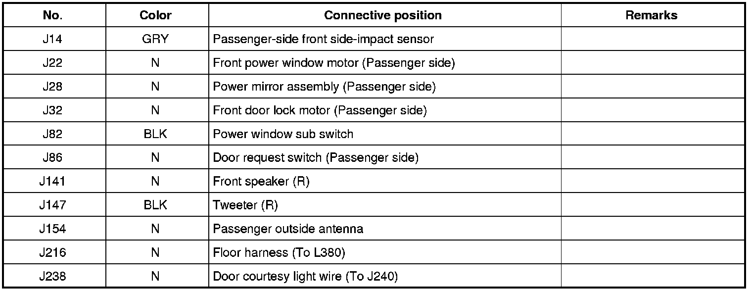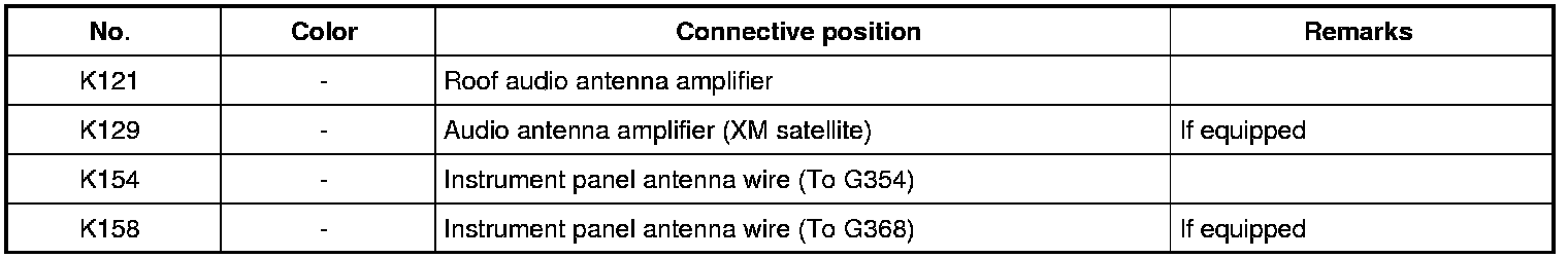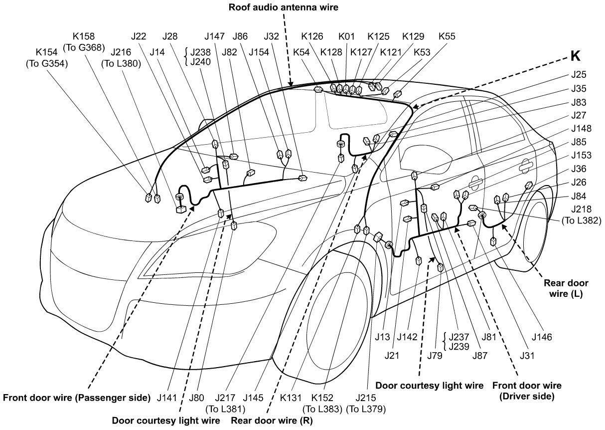 J: Front and Rear Door Wire, Door courtesy Light Wire / K: Roof Wire, Roof Audio Antenna Wire