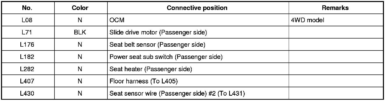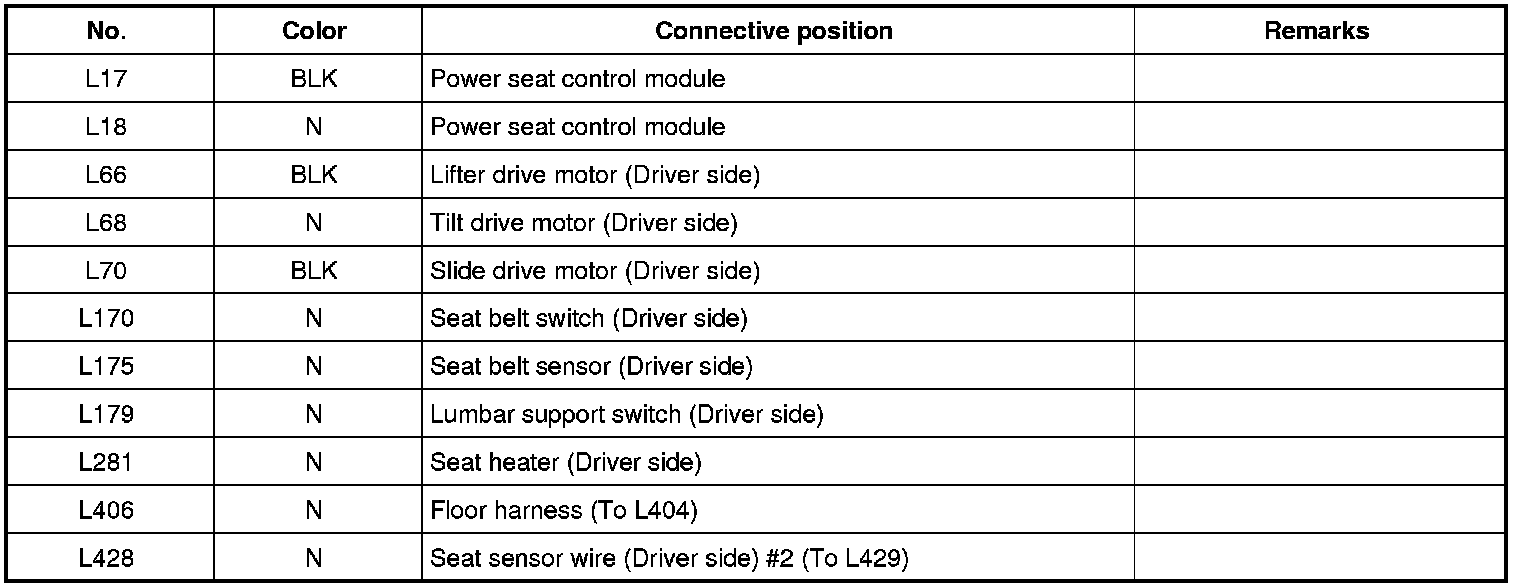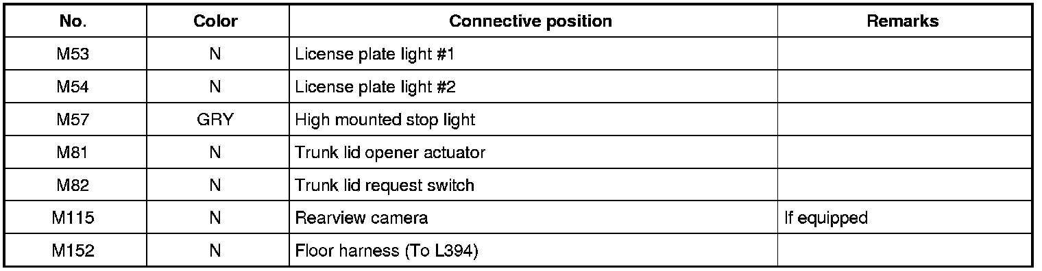 L: Seat Sensor Wire / M: Trunk Harness, Rear Bumper Wire