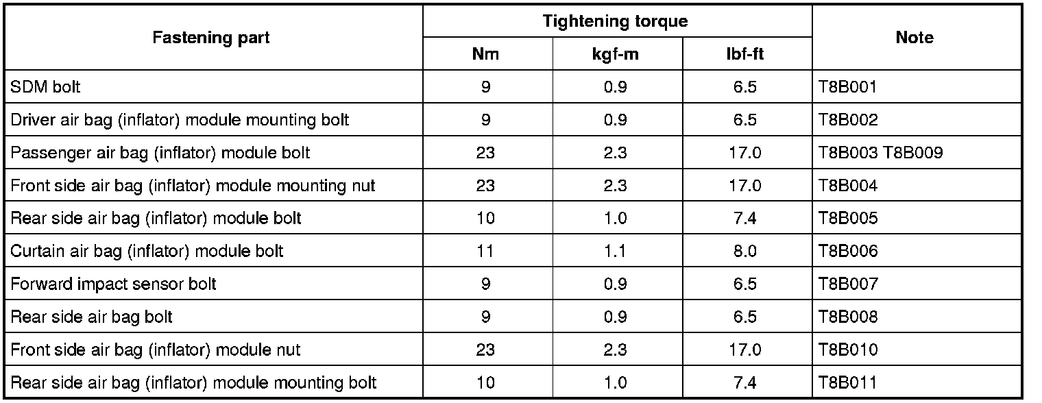For the tightening torques of fasteners not specified in this section, refer to Fastener Information Fasteners Information.