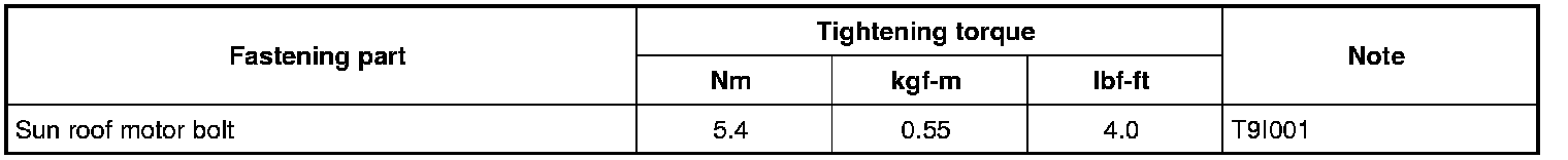 For the tightening torques of fasteners not specified in this section, refer to Fastener Information Fasteners Information.