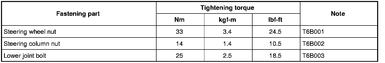 For the tightening torques of fasteners not specified in this section, refer to Fastener Information Fasteners Information.