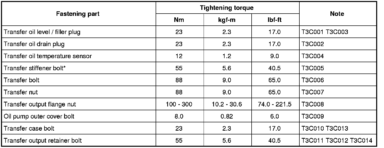 Tightening Torque Specifications