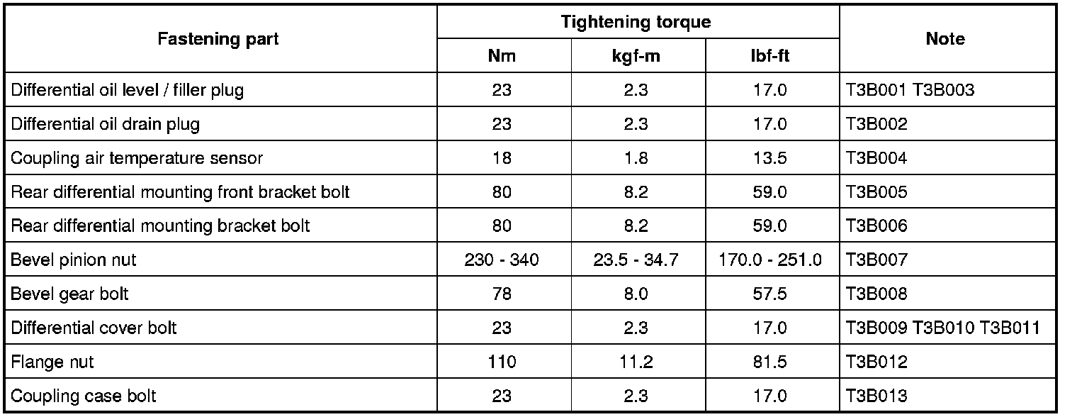 For the tightening torques of fasteners not specified in this section, refer to Fastener Information Fasteners Information.