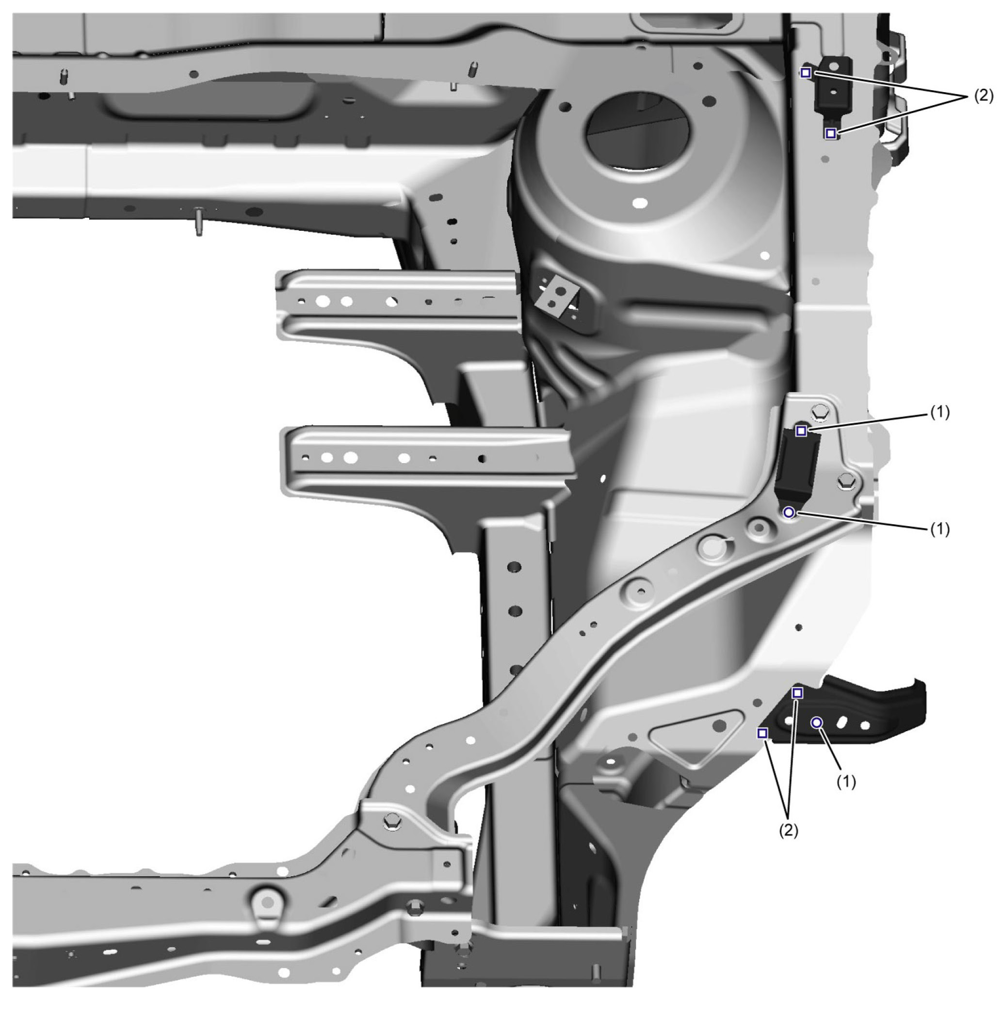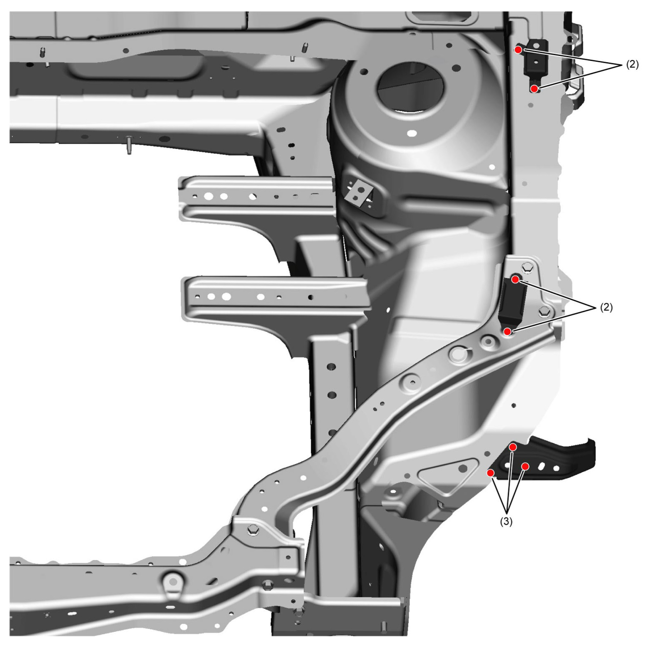 - Welding method and number of welding points are the same on both sides. This repair instruction shows procedure for left side.