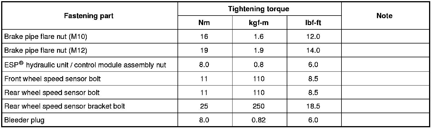 For the tightening torques of fasteners not specified in this section, refer to Fastener Information Fastener Information.