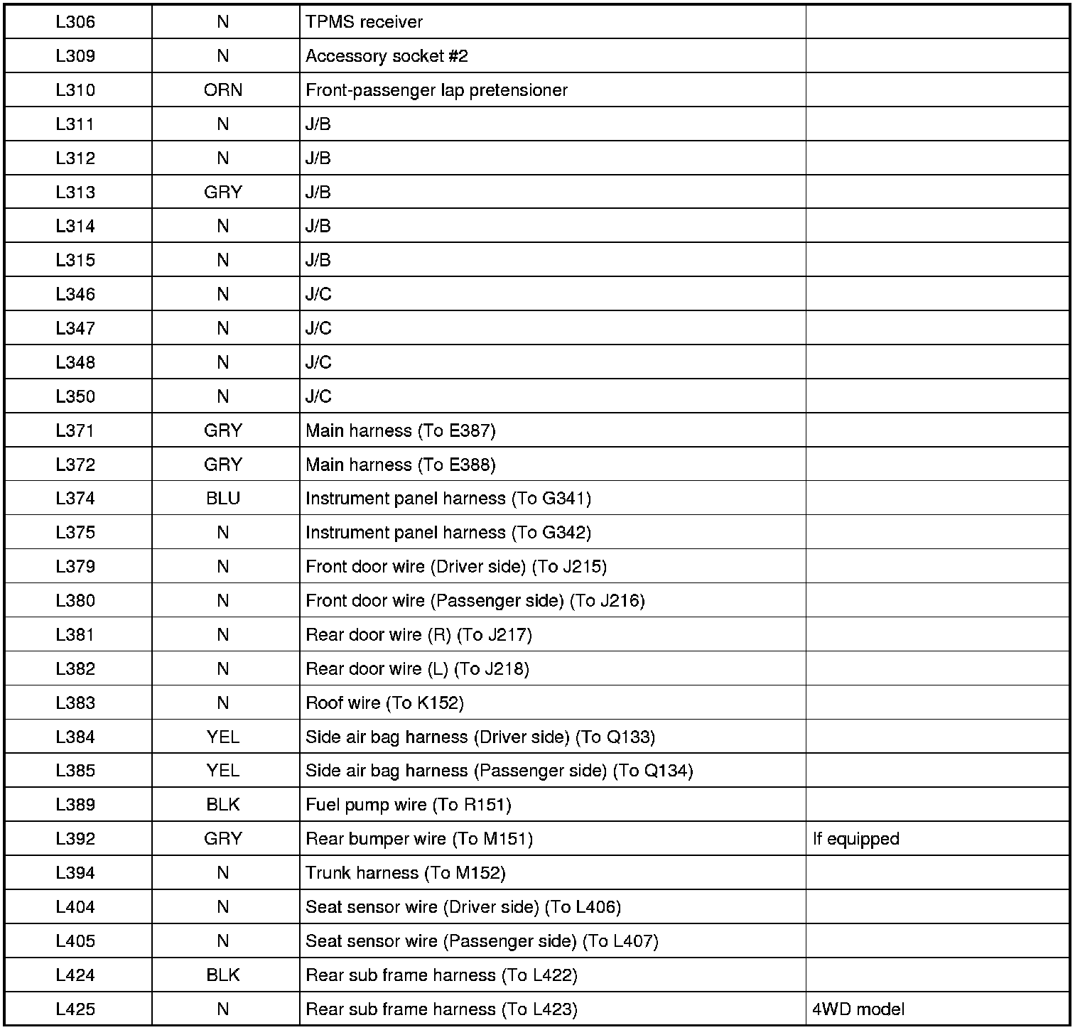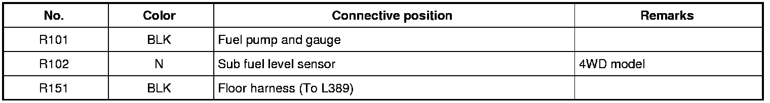 L: Floor Harness, Rear Sub Frame Harness / Q: Side Air Bag Harness / R: Fuel Pump Wire