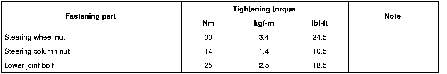 For the tightening torques of fasteners not specified in this section, refer to Fastener Information Fastener Information.