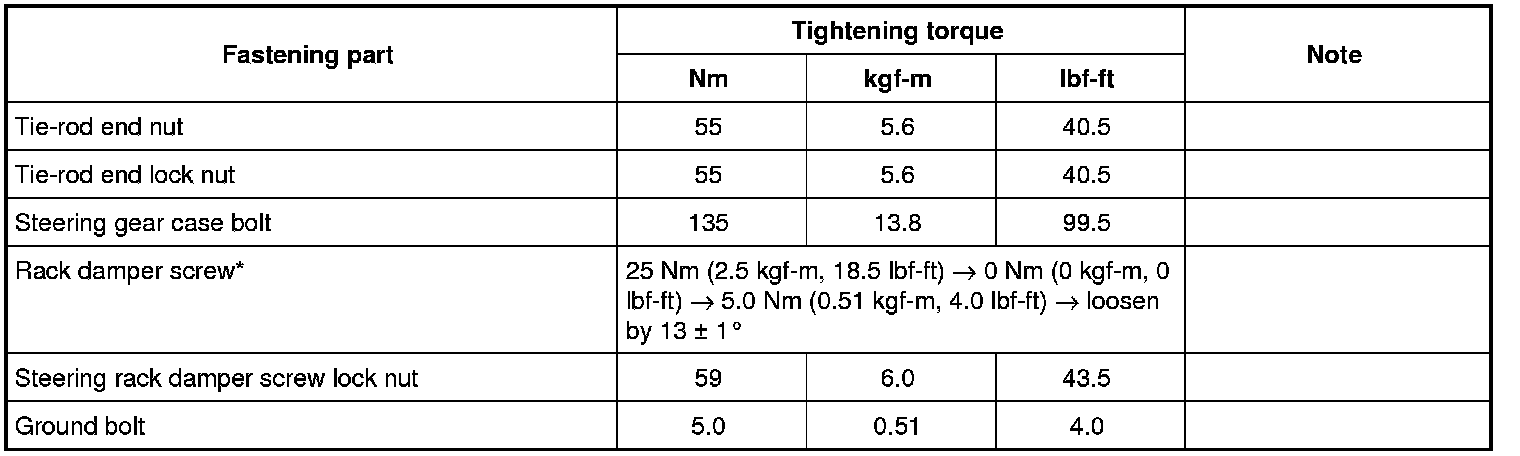 Tightening Torque Specifications