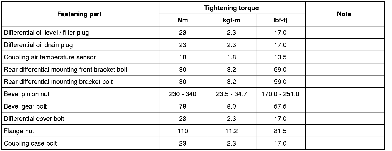 Tightening Torque Specifications