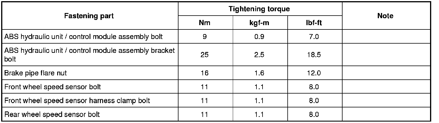 For the tightening torques of fasteners not specified in this section, refer to Fastener Information Fasteners Information.