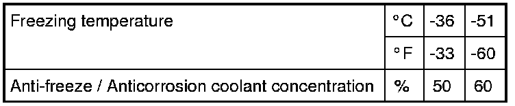 - Maintain cooling system freeze protection at -36 °C (-33 °F) to ensure protection against corrosion and loss of coolant from boiling. This should be done even if freezing temperatures are not expected.