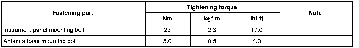 For the tightening torques of fasteners not specified in this section, refer to Fastener Information Fasteners Information.
