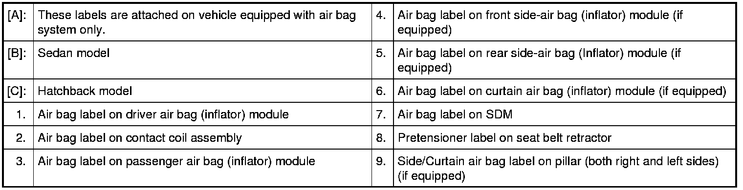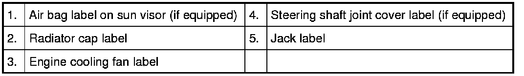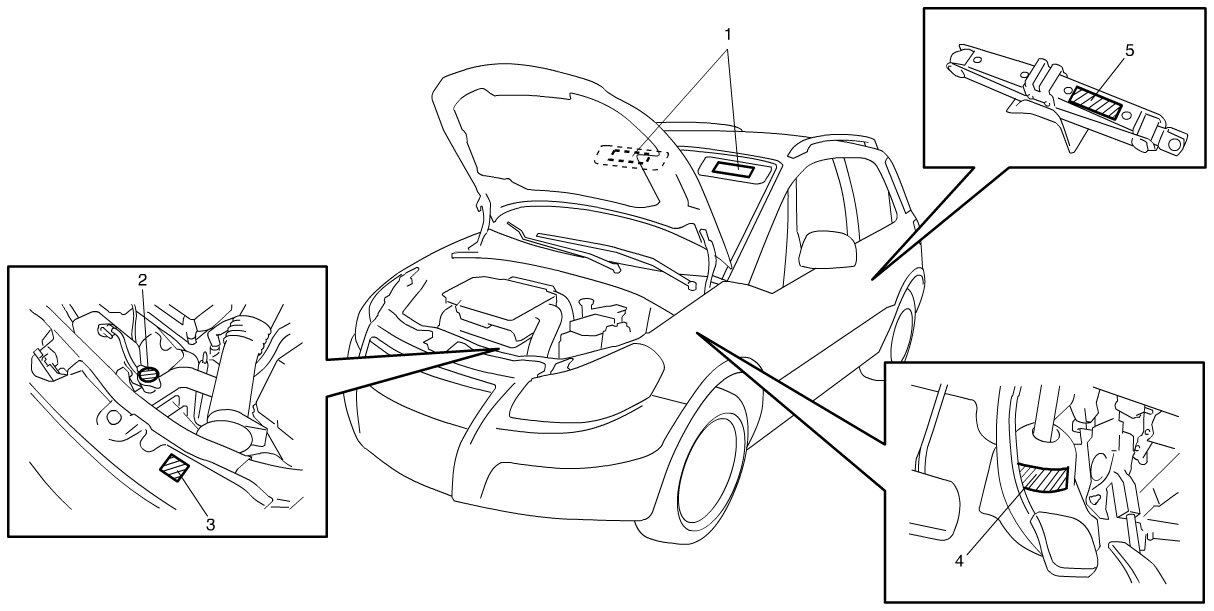 The figure shows main labels among others that are attached to vehicle component parts.