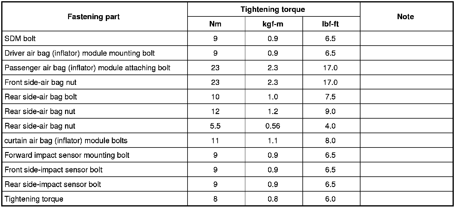 For the tightening torques of fasteners not specified in this section, refer to Fastener Information Fasteners Information.