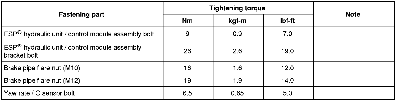 Tightening Torque Specifications