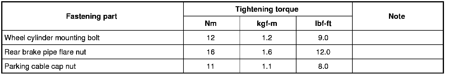 Tightening Torque Specifications