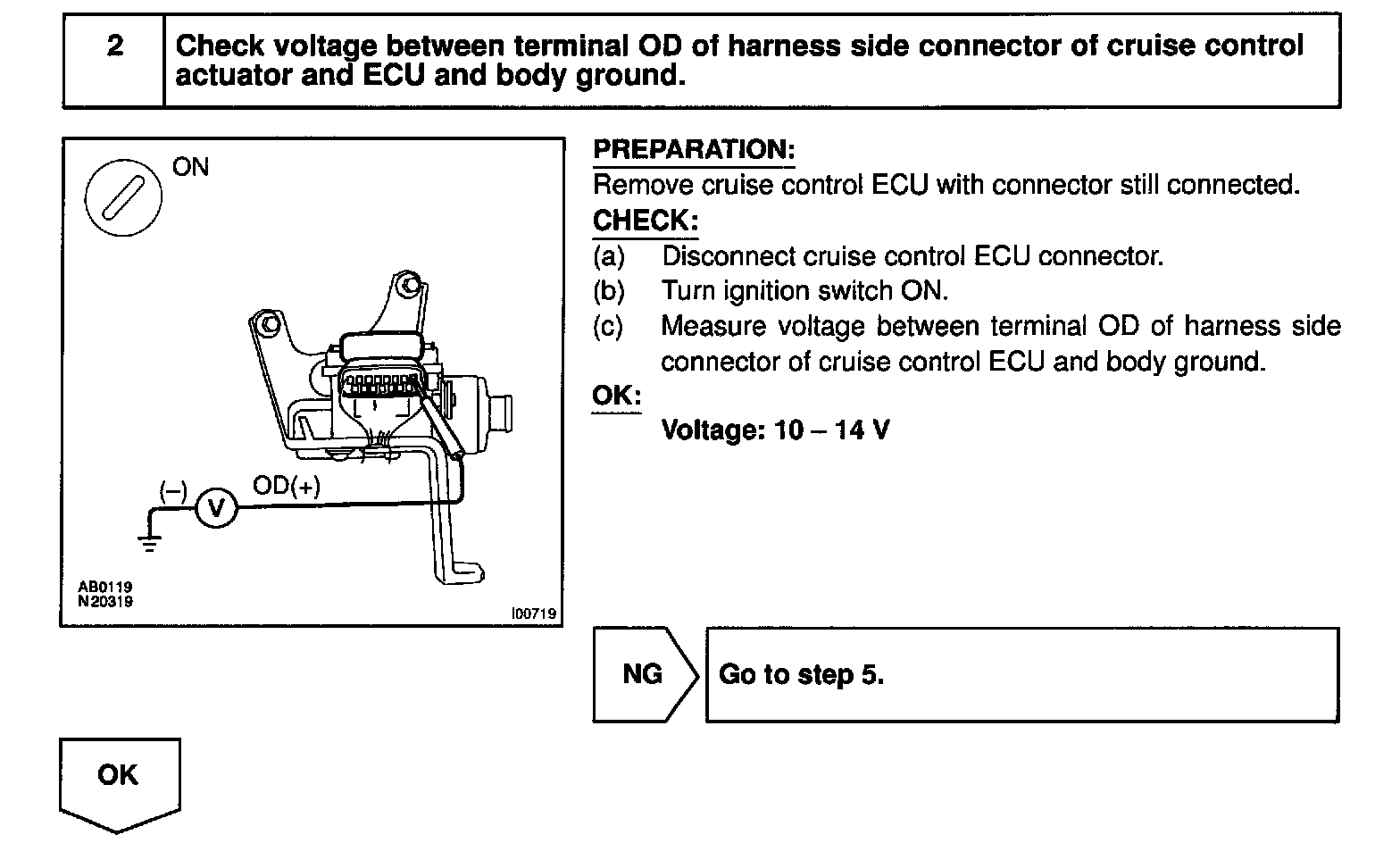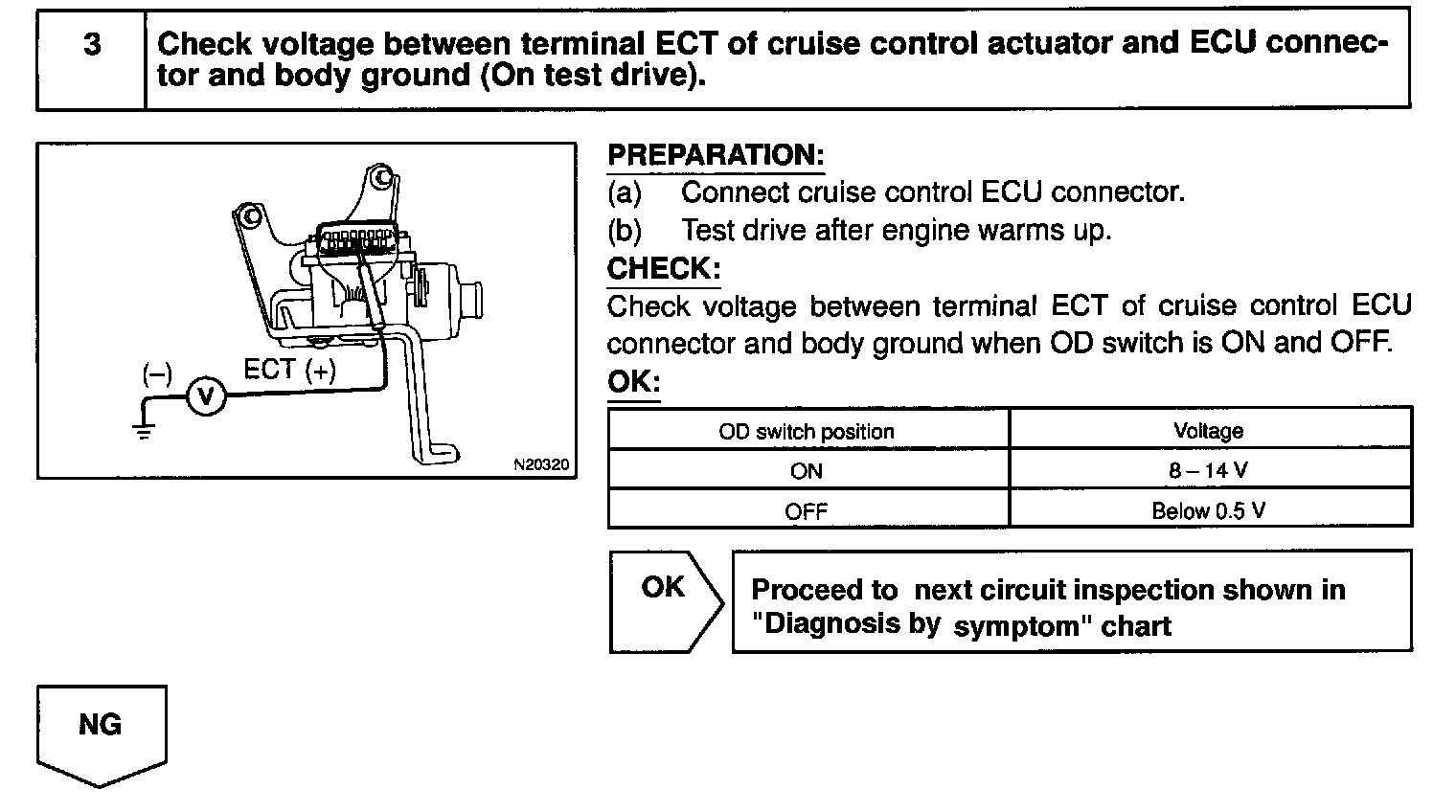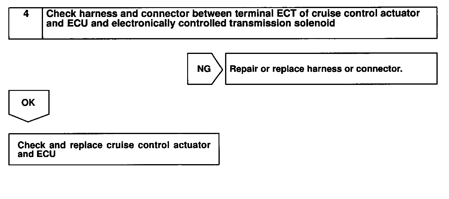 Terminal ECM of the cruise control ECU detects the shift change signal (output to electronically controlled transmission No.2 solenoid) from the electronically controlled transmission.