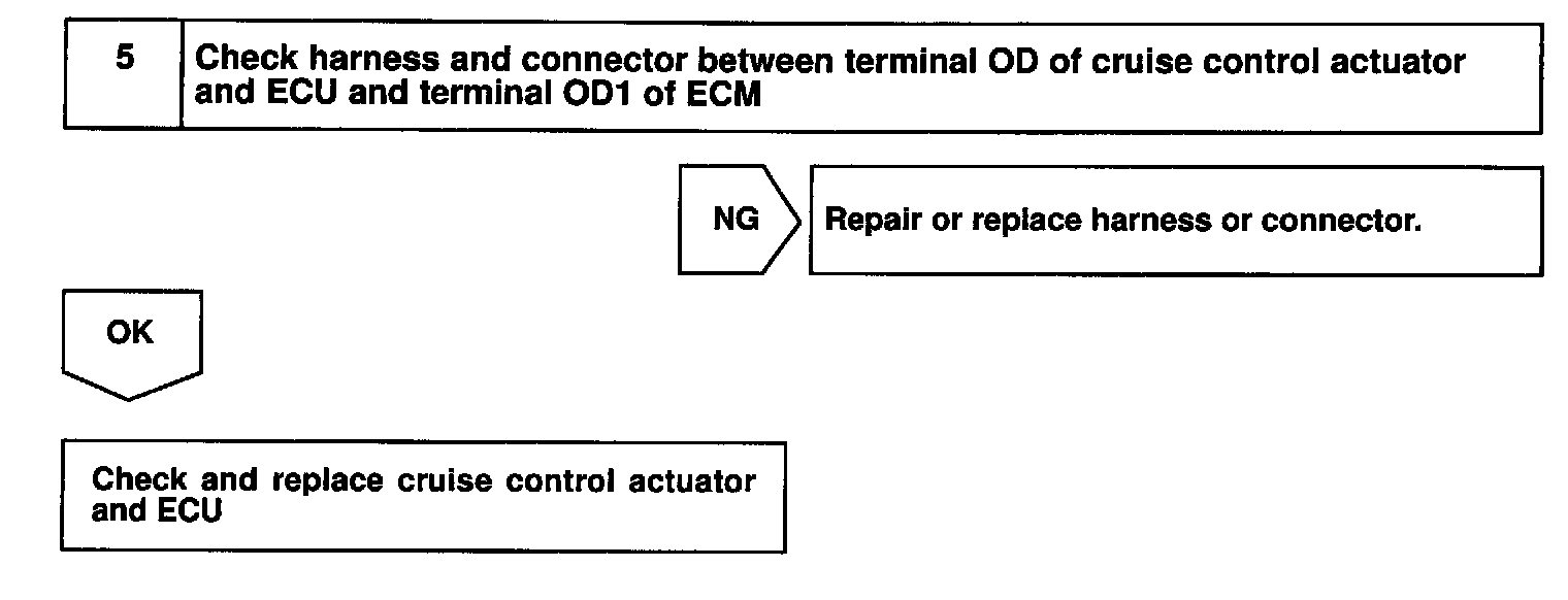 If vehicle speeds down, also when terminal electronically controlled transmission of the cruise control ECU receives down shifting signal, it sends a signal from terminal OD to ECM to cut overdrive until the end of the uphill slope, and the gear shifts are reduced and gear shift points in the electronically controlled transmission are changed.