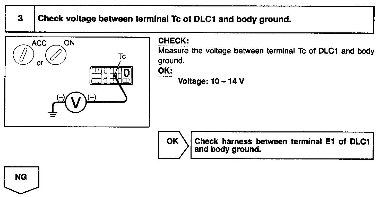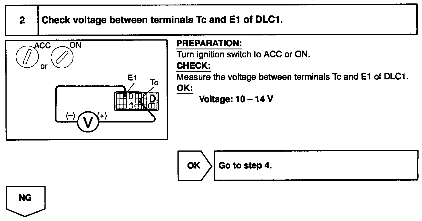 CIRCUIT DESCRIPTIONBy connecting terminals Tc and E1 of the [1][2]DLC1 the airbag sensor assembly is set in the DTC output mode. The DTCs are displayed by blinking the SRS warning light.
