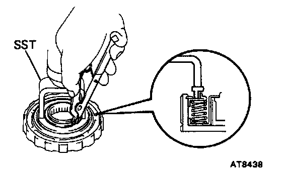 HINT: Make sure that the cutout portions of thrust washer match teeth of the spring retainer.