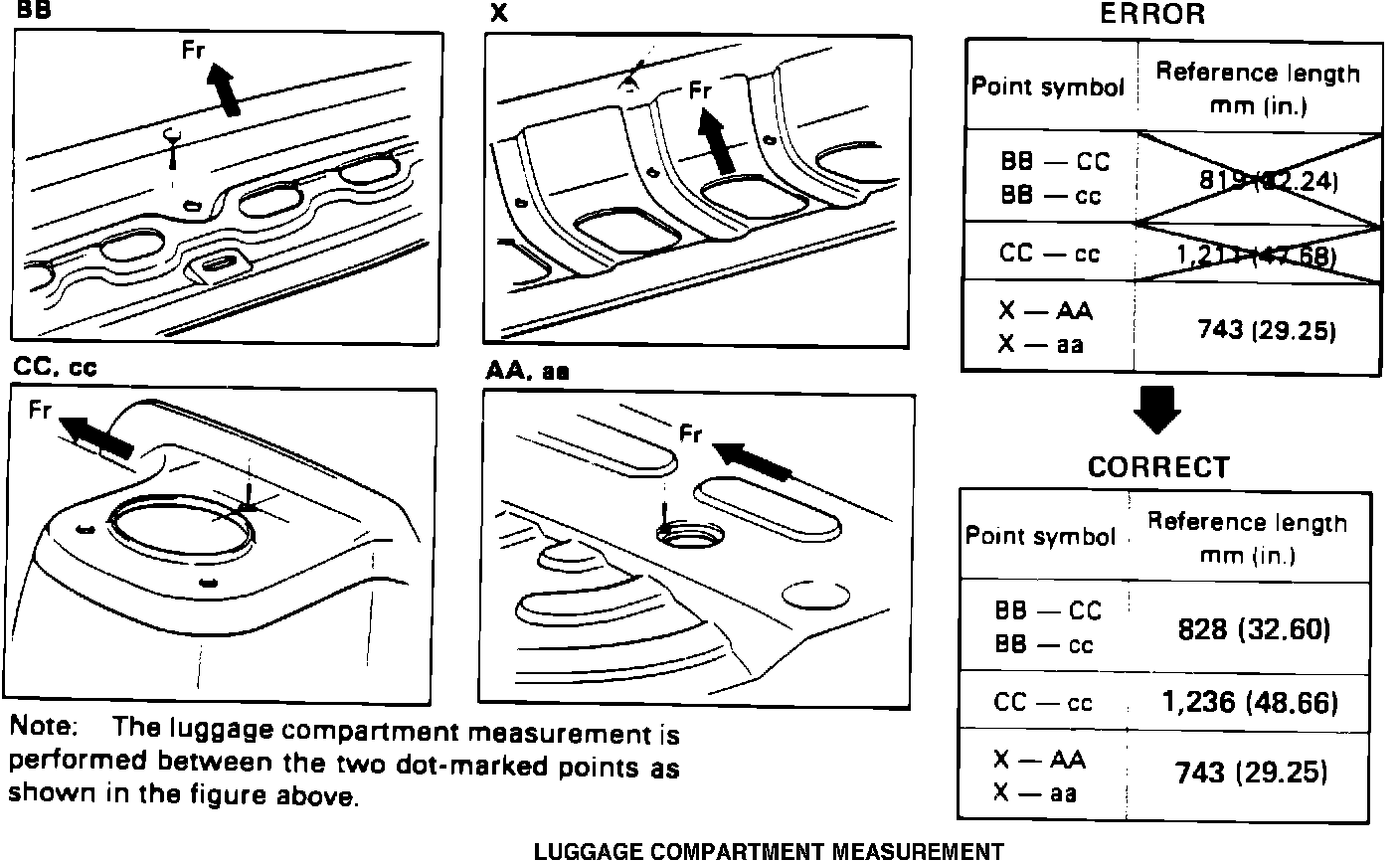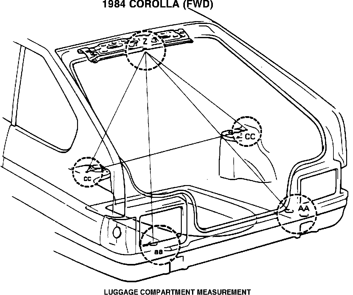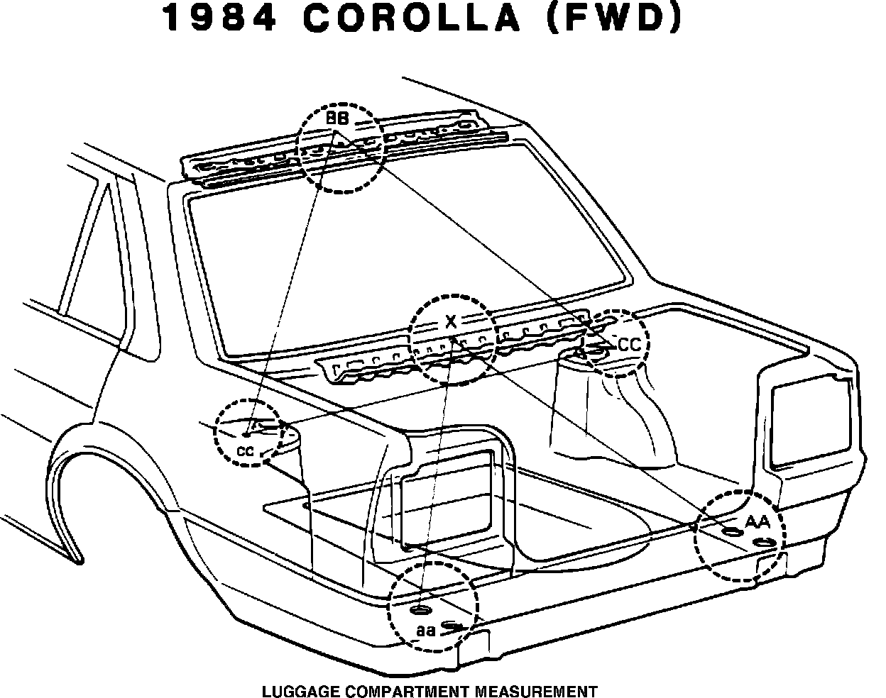 The factory has informed us that an error exists in the dimensional data that appeared in Toyota Product News #5, December 5, 1983. Errors appeared only in the 1984 Corolla (FWD) models rear luggage compartment data, and the corrected data is attached.